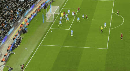 第17分鐘,曼城打出快速反擊,尼科·岡薩雷斯策動(dòng)進(jìn)攻,謝爾基的頭球變成助攻,哈蘭德冷靜打進(jìn)單刀球。
